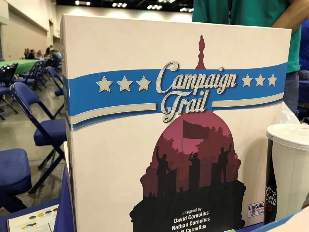 The designer showed me and 2 others how to play. It is simple, but very strategic and has tons of depth. With 2 players it is Republicans vs Democrats. With 3 it is 3 separate parties, and with 4 it is President and Vice President team game. The game is played in 3 broad rounds where you fundraise, campaign, advertise and such. Then when the first deck runs out there is a candidate debate. The debate mechanics are brilliant and too hard to describe here, but it feels like a real political debate and it really matters what cards you saved up in time for the debate. The game has been under development for about 6 years and this is the latest prototype. The full game will be shipping in 2 weeks to kickstarter backers.